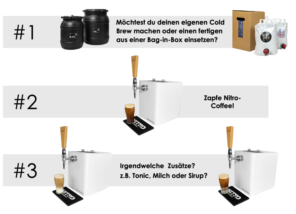 Nutze Cold Brew als Basis für dein neues Menü! Mit nur wenigen extra Zutaten wie Milch oder Tonic Water kannst du deinen Gästen ein völlig neues Menü mit den Lieblingsgetränken aus internationalen Kaffeeketten präsentieren. Einfach und schnell zu realisieren mit deiner SCHULTES Nitromaschine.