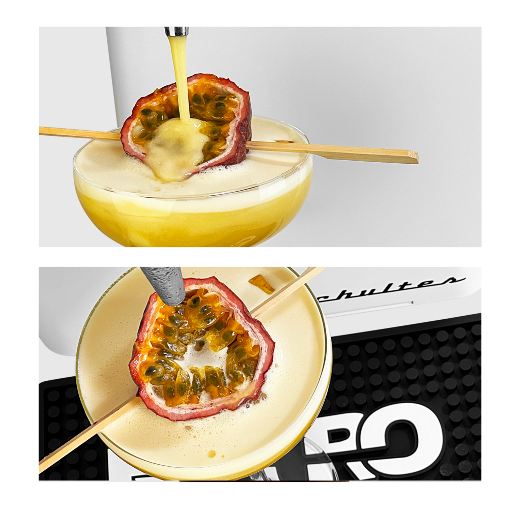 Der Passionsfruit-Martini, oft auch Pornstar-Martini genannt, ist ein verführerischer und süßer Cocktail mit Vanille und einem Hauch von Limette. Der Passionsfrucht-Martini-Cocktail ist eine süße Sünde für den späten Abend oder die Cocktail-Stunde.