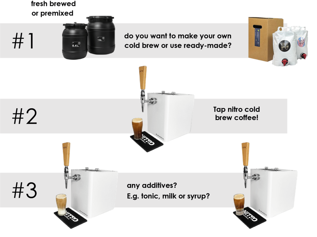 SCHULTES nitromachines are unique devices for professional preparation of high-quality nitro drinks. It's the easiest and most satisfying way to create creamy smooth nitro cold brew coffee, fancy nitro cocktails or iced teas, lemonades and more - the possibilities are endless.
